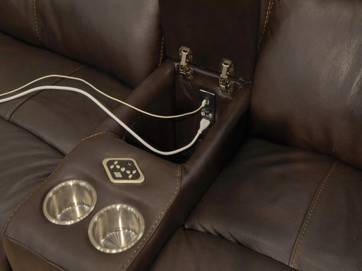 Catnapper Furniture Mara Voice Power Headrest with Lumbar Power Lay Flat Reclining Console Loveseat in Coffee