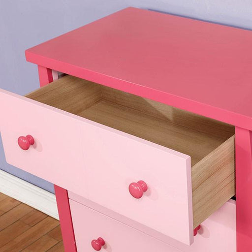 DANI Night Stand, 19"W X 16"D X 21"H, 15.4lbs. With its pink color and contemporary elements, this stylish night stand brings functionality and des...