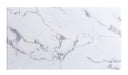 VILLARSGLANE Coffee Table, 51"L X 27 1/2"W X 18"H, 143.33lbs. Complete your space with this upscale design. This coffee table look stunning with its faux marble top, which turns out easier to manage and keep clean than their original counterparts. Along the edges are beautiful bevels that blend nicely with the underlying frame. The surface is held up by a unique chrome pedestal made of stainless steel with bevels that reflect light beautifully. The whole structure is supported by a chrome base.