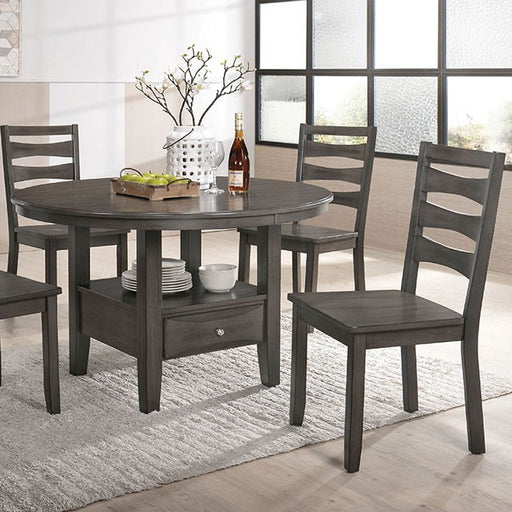 The weathered gray finish of this transitional style dining set gives a rustic vibe to a contemporary collection for a look with personality and mo...