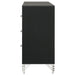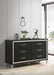 Accentuate surrounding decor with the sophistication of a modern six-drawer dresser. Designed for ample storage, it features a refined look with spacious drawers ideal for everything from clothing to accessories and linens. Its bright white finish is crisp and chic, complemented perfectly with rich, warm gold trim that gleams in the light. Decorative legs have hairpin inspired style, offering a stylish touch of vintage energy. Long bar pulls complete the look with polished perfection.