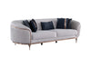 Pandora Sofa Set reflects the essence of contemporary design, offering a flawless aesthetic experience. The striped pattern on its arms, slim metal legs, and gold color details aim to add both sophistication and elegance to your modern living spaces.