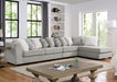 LEANDRA Chair, 30"L X 34"W X 28 3/4"H (SEAT HT: 18 1/2", SEAT DP: 22"), 55lbs. Sometimes, a large family needs versatility, and this armless chair (along with the matching sectional sold separately) provides that! It's a perfect addition to expand a dynamic piece for a more luxurious seating arrangement. Loose pillow backs offer easy maintenance, while the whole body is wrapped around in soft chenille, save for the large, tapered legs.